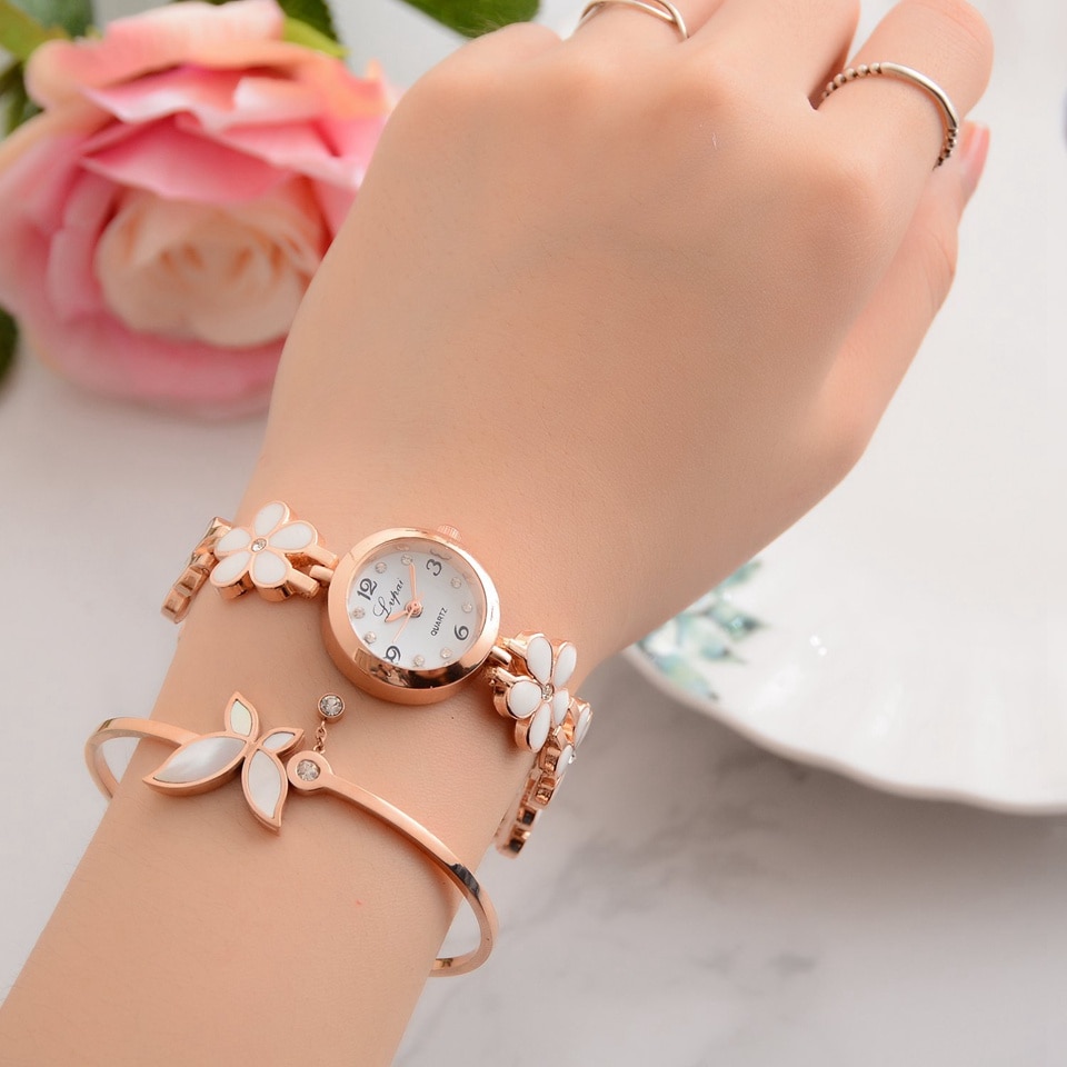 Lvpai Brand Watches Women Daisies Flower Gold Rhinestone Bracelet Wrist Watch Girl Lady Women Dress Fashion Classic Watch