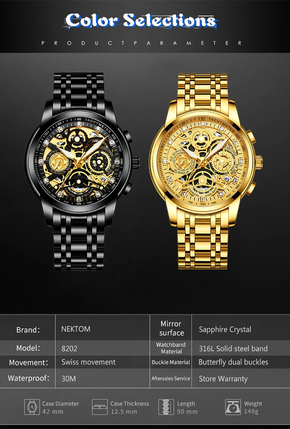 - Dial Diameter:Â 42mm