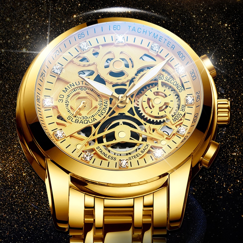 Gold Watch Stainless Steel Big Male Wristwatch